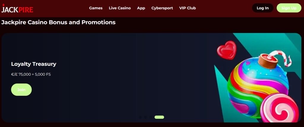 Jackpire Casino to nowoczesna platforma gamingowa założona w 2025 roku, działająca na licencji Curaçao i skierowana do graczy z całej Europy, w tym z Francji. Serwis oferuje szeroki wybór slotów, gier stołowych, mini-gier i pokera, a także rozbudowaną sekcję kasyna na żywo z tytułami takimi jak Crazy Time, Treasure Island czy Wheel of Fortune. Dzięki stabilnej infrastrukturze, atrakcyjnym bonusom i różnorodnym metodom płatności, Jackpire Casino zapewnia bezpieczne, wygodne i dynamiczne środowisko do codziennej gry.